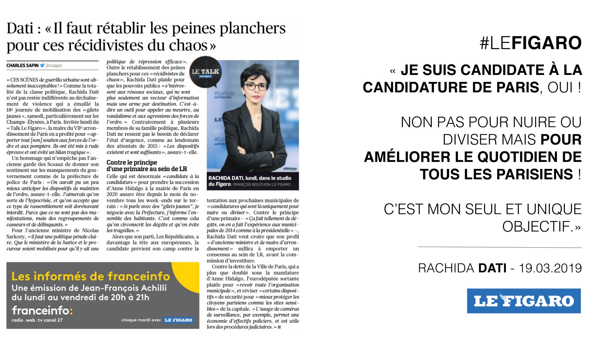 Rachida Dati ن Je Suis Candidate A La Candidature De Paris Oui Non Pas Pour Nuire Ou Diviser Mais Pour Ameliorer Le Quotidien De Tous Les Parisiens