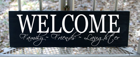 Welcome Family Friends Laughter Wood Sign Etsy