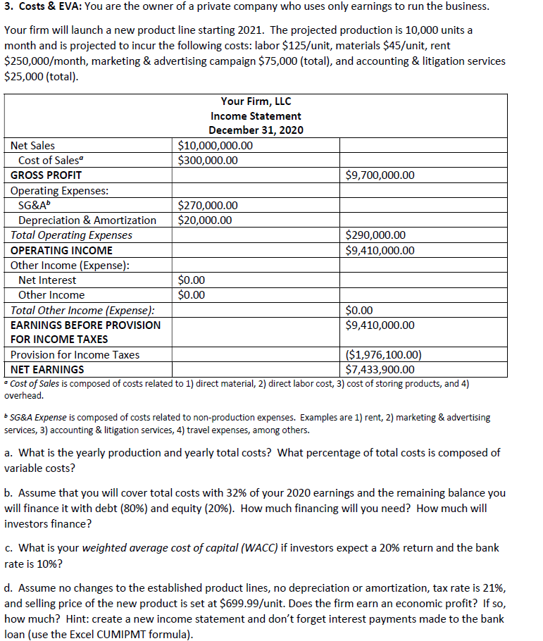 Solved 3 Costs Eva You Are The Owner Of A Private Com Chegg Com