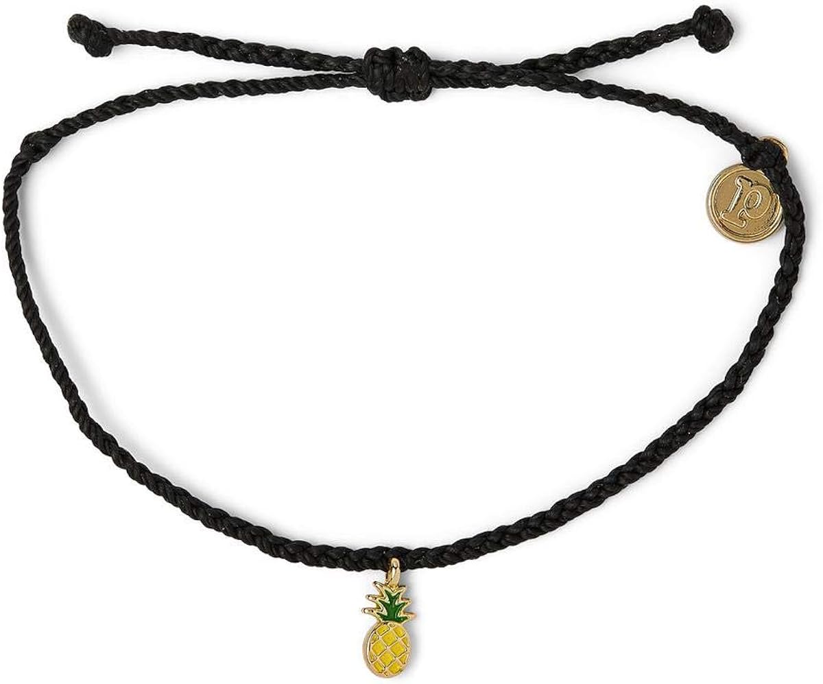 Amazon Com Pura Vida Gold Enamel Pineapple Bracelet 100 Waterproof Adjustable Band Coated Charm Black Jewelry