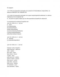 Subjonctif cours Le subjonctif On utilise le subjonctif après les verbes qui marquent le doute, le désir, la nécessité Il s'agit des verbes tels que to advise, to ask, to command, to demand, to insist, to move, to order, to prefer, to propose, to recommend, to request, to require, to stipulate, to suggest et to urge I) Exemples d'utilisation. LE SUBJONCTIF PASSÉ On emploie le subjonctif passé lorsqu e l’action exprimée par le verbe se situe avant une autre action Je voudrais que tu fasses tes devoirs Subjonctif présent = Maintenant À mon retour, je voudrais que tu aies fait tes devoirs Subjonctif passé = Action qui se situe avant « mon retour ». Exprimer une hypothèse requiert le plus souvent le subjonctif en espagnol On utilise le présent du subjonctif après Des mots tels que tal vez, quizás, acaso (placés avant le verbe) qui signifient "peutêtre" Des expressions telles que es posible que, puede ser que, puede que ou es probable que qui signifient "il est possible que".