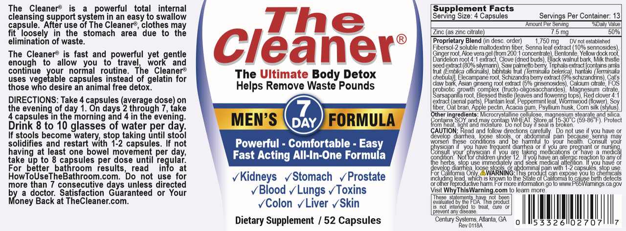The Cleaner 7 Day Men S Formula 52 Caps Body Detox Fast Free 1st Class Shipping 19 99 Picclick