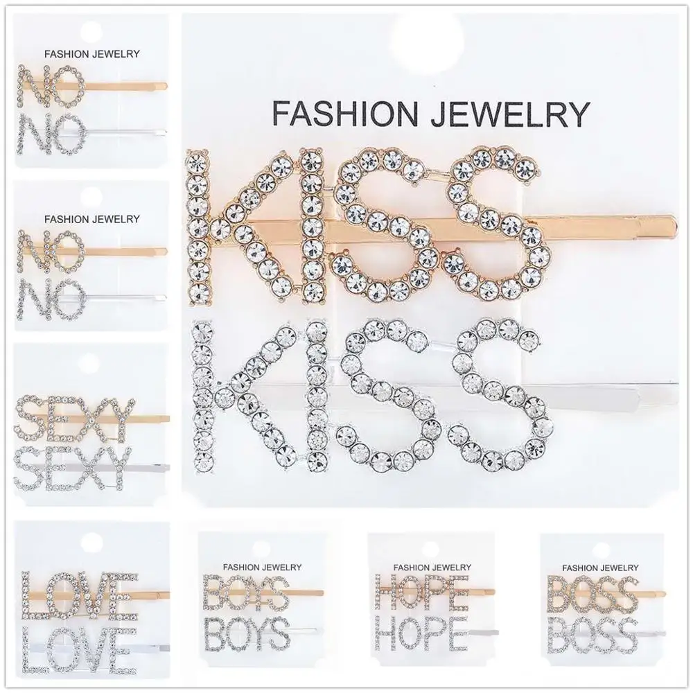 2 Pieces Lot Metal Epingle A Cheveux En Strass Mots Alphabet Anglais Personnalise Diamant Clip Lateral Simple Accessoires Pour Cheveux Aliexpress