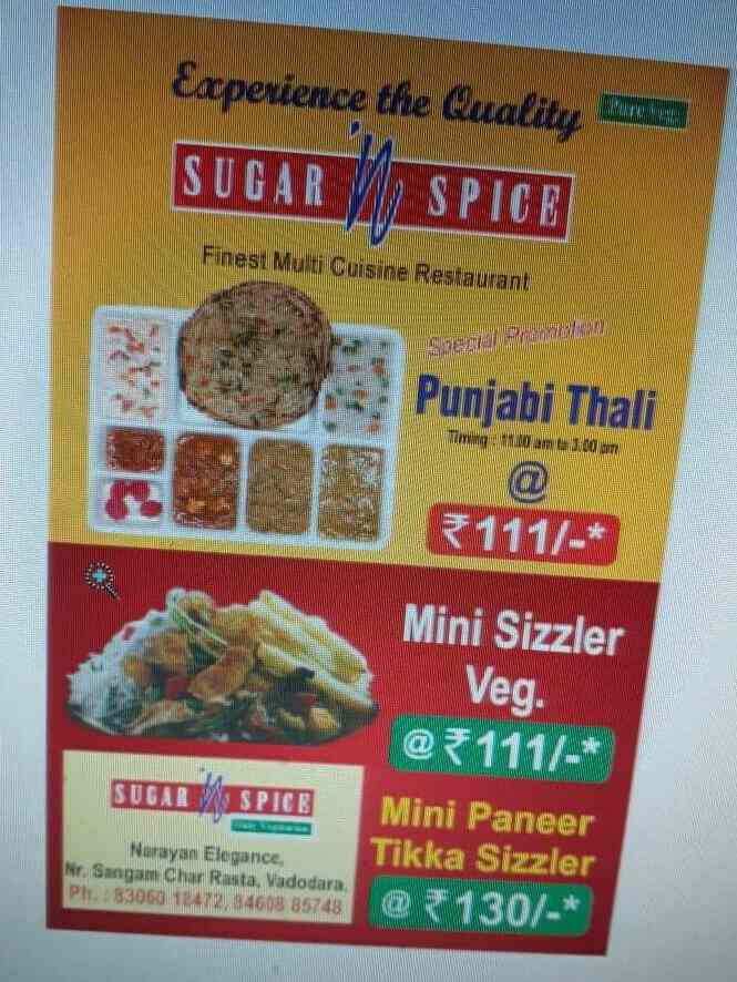 Menu Of Sugar N Spice Alkapuri Vadodara Dineout Discovery