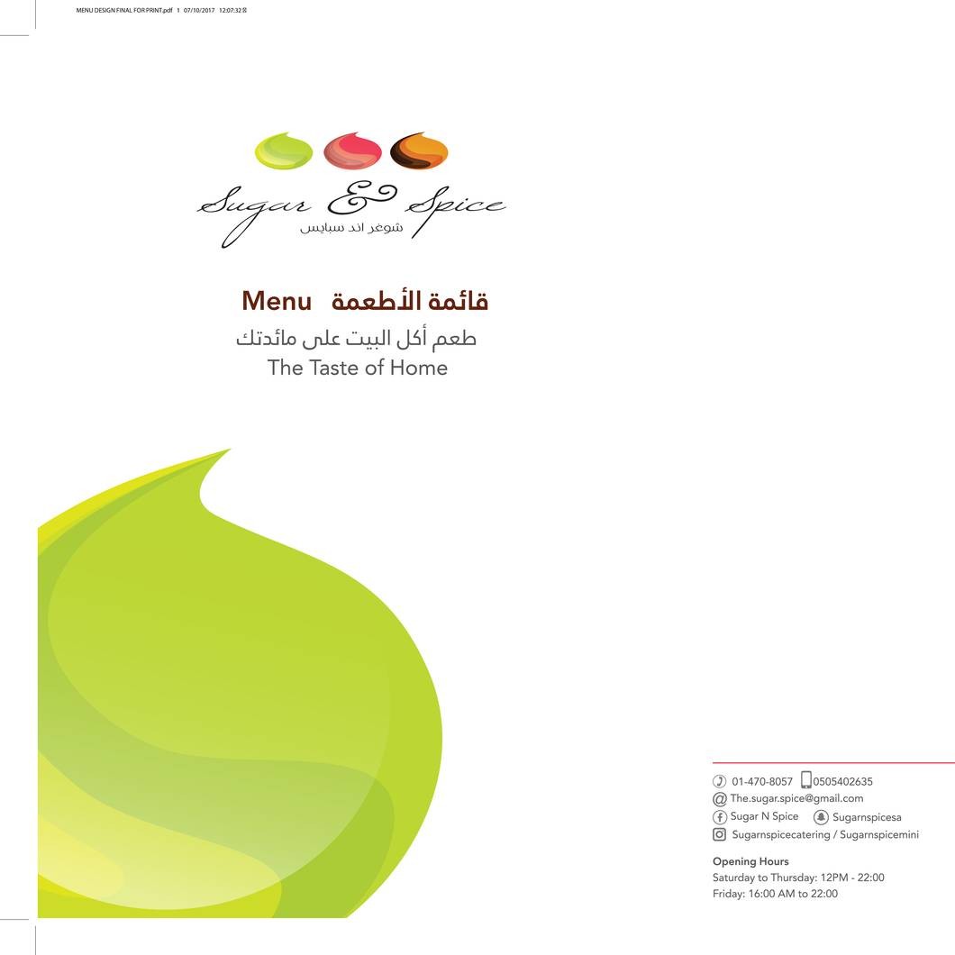 Menu All of our menu items are made from scratch and each meal is prepared especially for your event!. Menu for Sugar & Spice Thai provided by Allmenuscom DISCLAIMER Information shown may not reflect recent changes Check with this restaurant for current pricing and menu information A listing on Allmenuscom does not necessarily reflect our affiliation with or endorsement of the listed restaurant, or the listed restaurant's endorsement of. Menu for Sugar & Spice Thai provided by Allmenuscom DISCLAIMER Information shown may not reflect recent changes Check with this restaurant for current pricing and menu information A listing on Allmenuscom does not necessarily reflect our affiliation with or endorsement of the listed restaurant, or the listed restaurant's endorsement of.