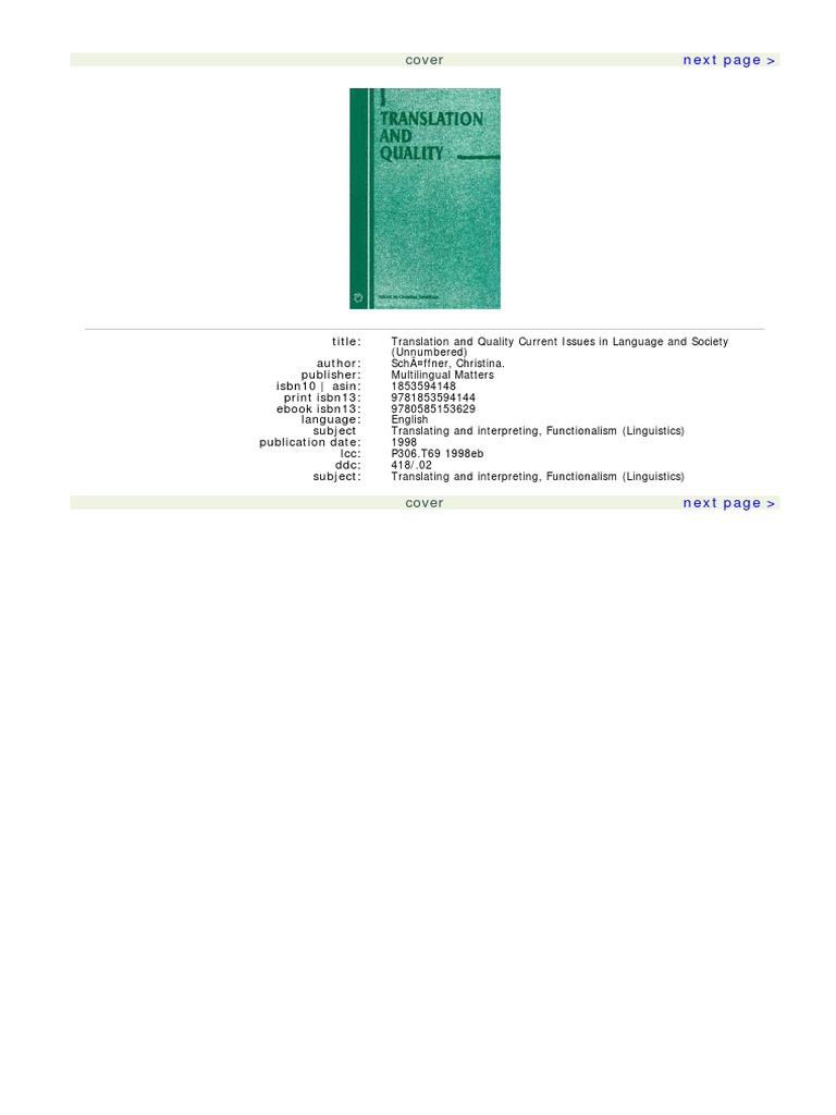 Christina Schaffner Translation And Quality Current Issues In Language And Society 1998 Multilingual Matters Limited Libgen Lc Pdf Translations Educational Assessment