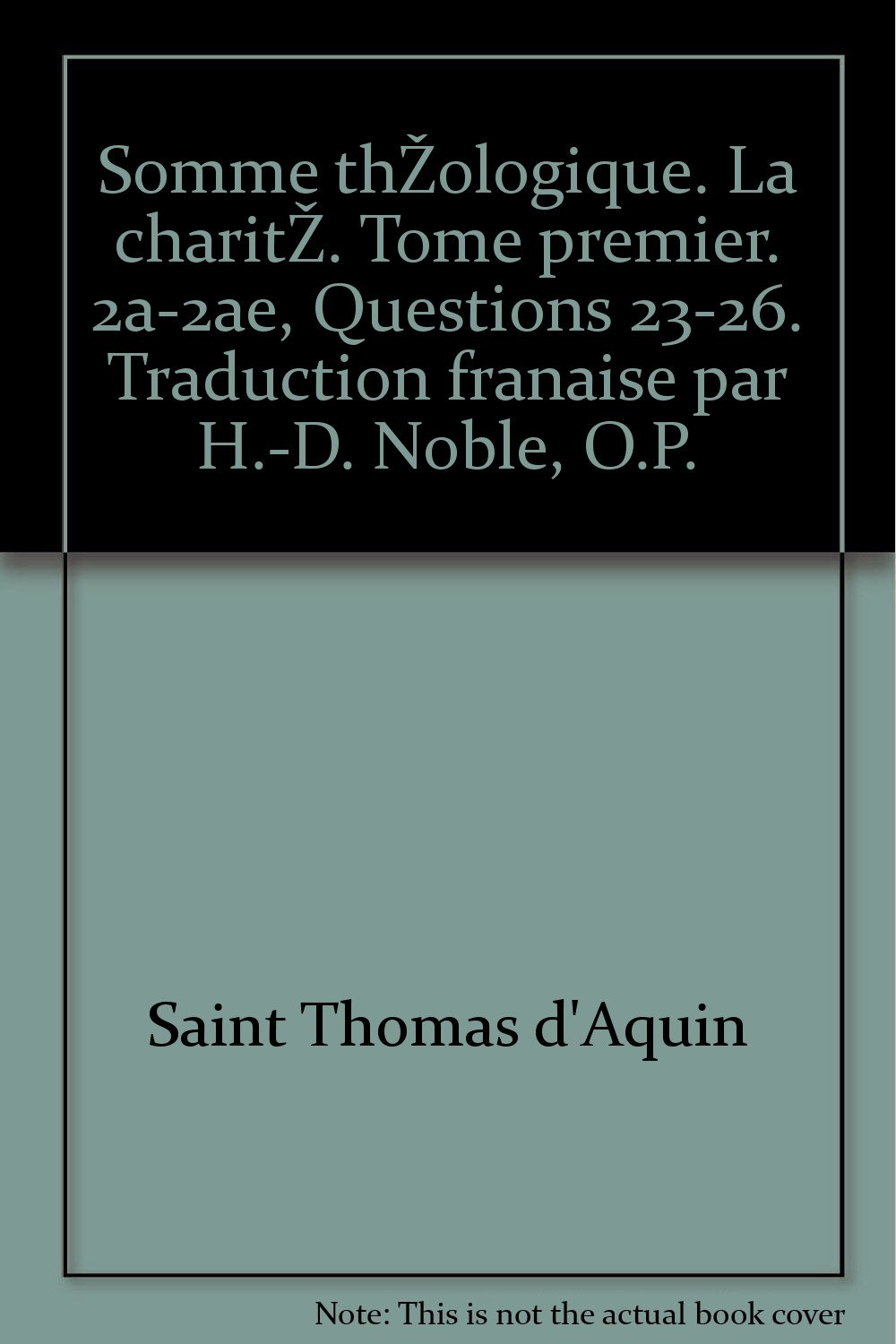 Somme Theologique La Charite Tome Premier 2a 2ae Questions 23 26 Traduction Francaise Par H D Noble O P Saint Thomas D Aquin Amazon Com Books