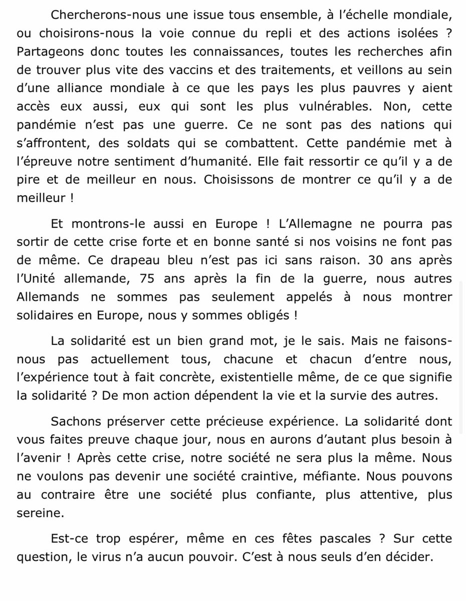 Laurent Marchand Voici Un Extrait Du Discours De Paques Du President Allemand Et Le Site De La Presidence Ou Se Trouve L Integrale En Francais Covid19 Coronavirus T Co 8nh856cmf5 T Co Kwuv3hj0ge