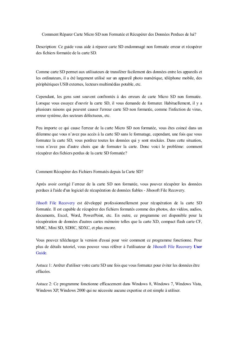 Comment Recuperer Les Donnees D Une Carte Sd