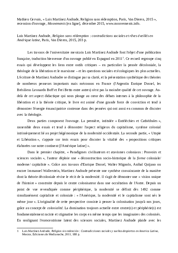 Recension Luis Martinez Andrade Religion Sans Redemption Mathieu Gervais Academia Edu