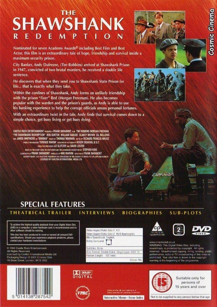 The Shawshank Redemption Import Allemand Amazon Fr Tim Robbins Morgan Freeman Bob Gunton William Sadler Clancy Brown Gil Bellows Mark Rolston James Whitmore Jeffrey Demunn Larry Brandenburg Neil Giuntoli Brian Libby Roger Deakins