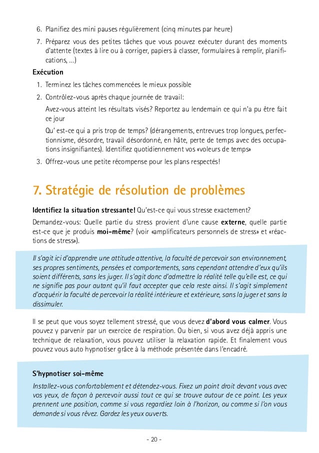 Techniques de relaxation par le contrôle respiratoire Simple et rapide, elle convient généralement à tous Elle est souvent associée à d’autres de programmes de relaxation indiqués dans le traitement des troubles anxieux Très utilisée dans les thérapies brèves et les TTC. 3 techniques de relaxation simples pour réduire le stress Les techniques de relaxation sont une excellente façon d’aider à la gestion du stress La relaxation n’est pas seulement une question de tranquillité d’esprit ou un passetemps, elle est un processus qui diminue les effets du stress sur votre esprit et votre corps Les techniques de. La relaxation peut revêtir différentes formes Toutes ces techniques de relaxation visent à réduire le stress, depuis la respiration profonde en passant par la sophrologie Découvrez ces moyens simples d'être plus serein.
