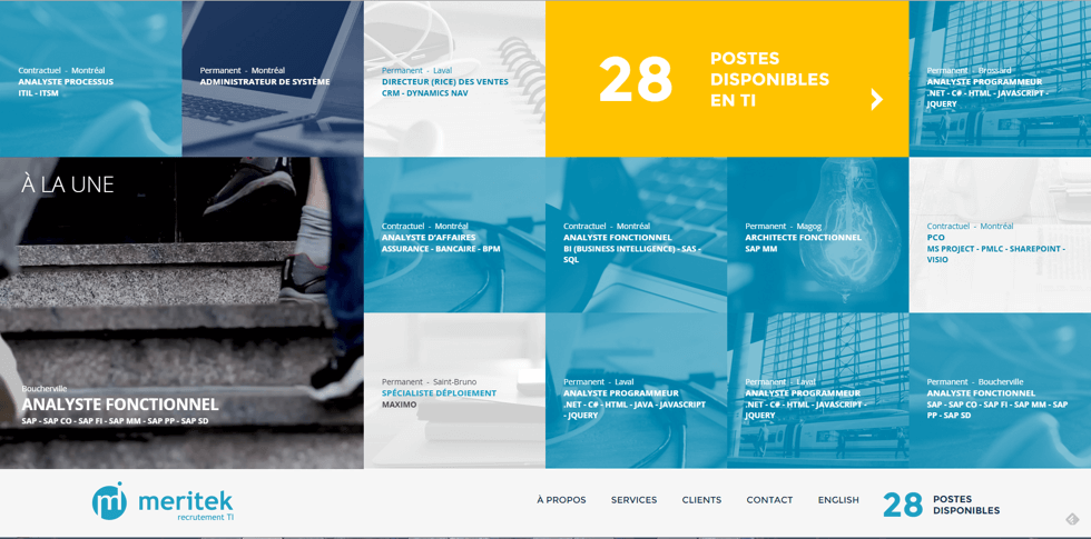 Accueil » site vitrine site vitrine 54 templates Bootstrap gratuits à télécharger 25 templates HTML 5 gratuits à télécharger pour vos prochains Vous aimerez aussi 10 logiciels de retouche photo gratuits pour créer 7 CRM gratuits pour booster votre relation client. Un site vitrine est un site Web qui présente en ligne les produits ou les services d'une organisation dans le but d'attirer simplement l'attention et d'éveiller l'intérêt des internautes de passage, sans permettre d'interactions entre l'internaute et l'organisation pour les sites vitrines statiques et en les permettant pour les sites vitrine dynamiques, sans permettre à l'internaute d. Le site web contient beaucoup d’informations sur l’entreprise que ce soit au niveau financier ou de ses engagements Sites de type Marketplace VIP Stage & Alternance Réalisée par l’agence WordPress Pilot’In, VIP Stage & Alternance est le parfait exemple d’un jobboard réussi Souvent cantonné aux sites vitrines ou ecommerce.