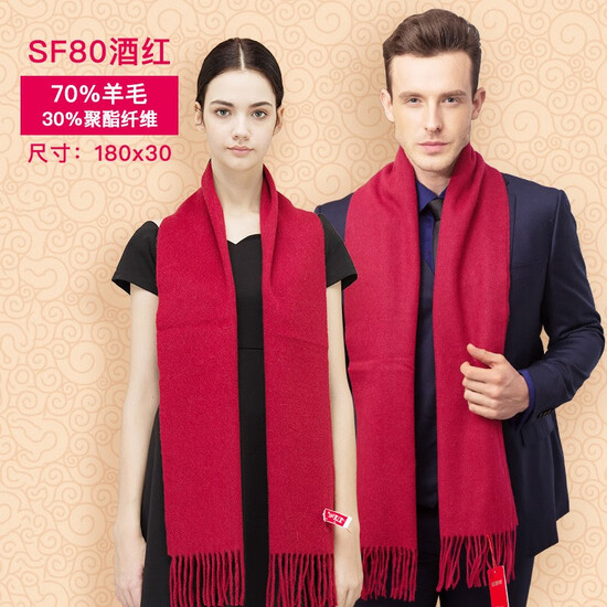 Hengyuanxiang Wool Scarf Men And Women Custom Logo Embroidery Solid Color Cashmere Red Company Annual Meeting Group Buying Gift Wholesale Red Scarf Gift Box Sf80 Wine Red 70 Wool 30 Polyester Fiber