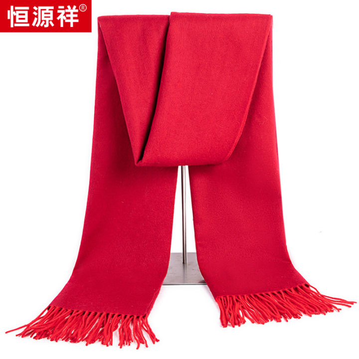 Hengyuanxiang Pure Wool Scarf Women S Autumn And Winter Birth Year Bright Red Scarf Shawl Thick Chinese Red Scarf Men Lazada