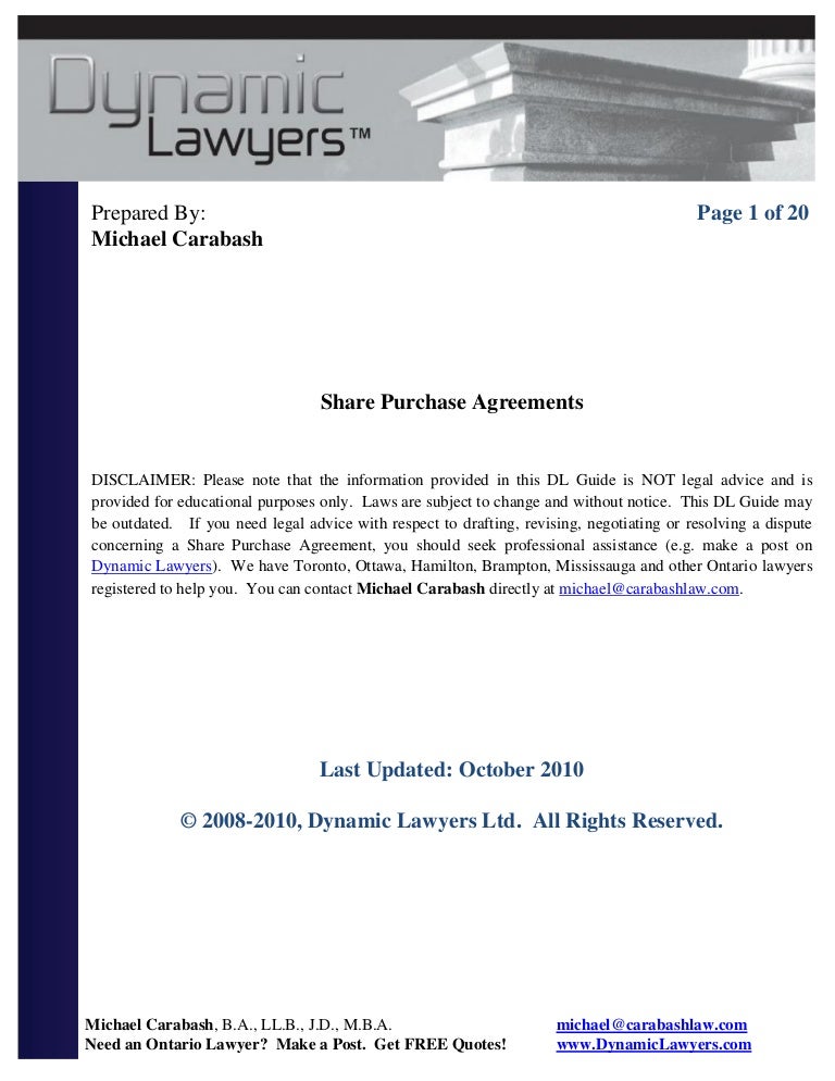 Share Purchase Agreement Ontario のギャラリー