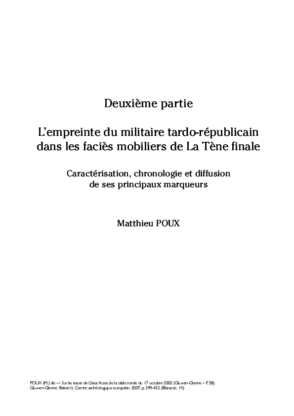 Pdf L Empreinte Du Militaire Cesarien Dans Les Facies Mobiliers De La Tene Finale Caracterisation Chronologie Et Diffusion De Ses Principaux Marqueurs Matthieu Poux Academia Edu