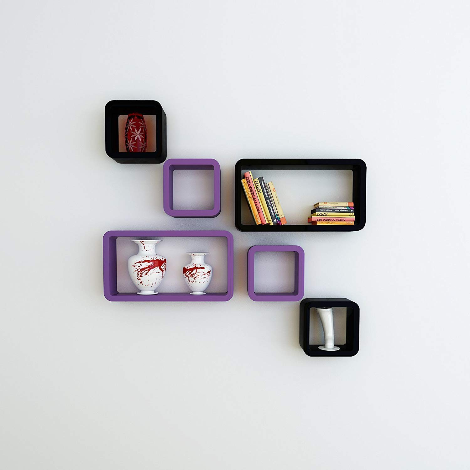 Online Craftbuzz 6 Piece Cube Rectangle Wall Rack Shelves Purple Black Amazon In Home Kitchen