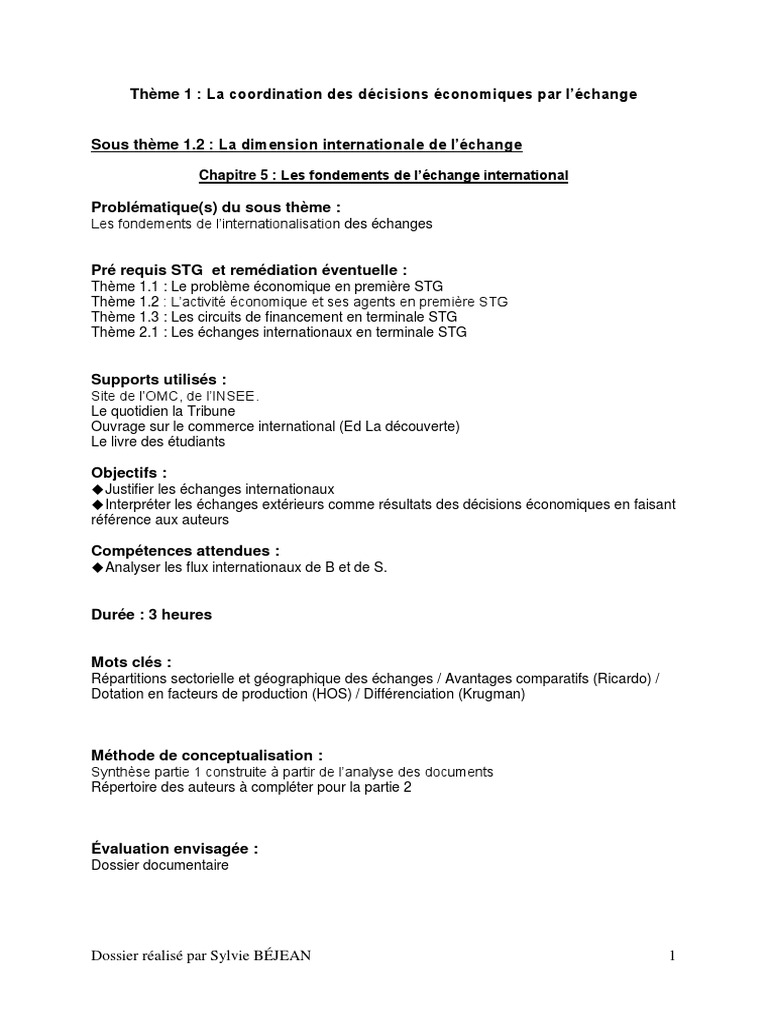 Les Fondements De L Echange International Dit Theses Cours D Economie Bts Am