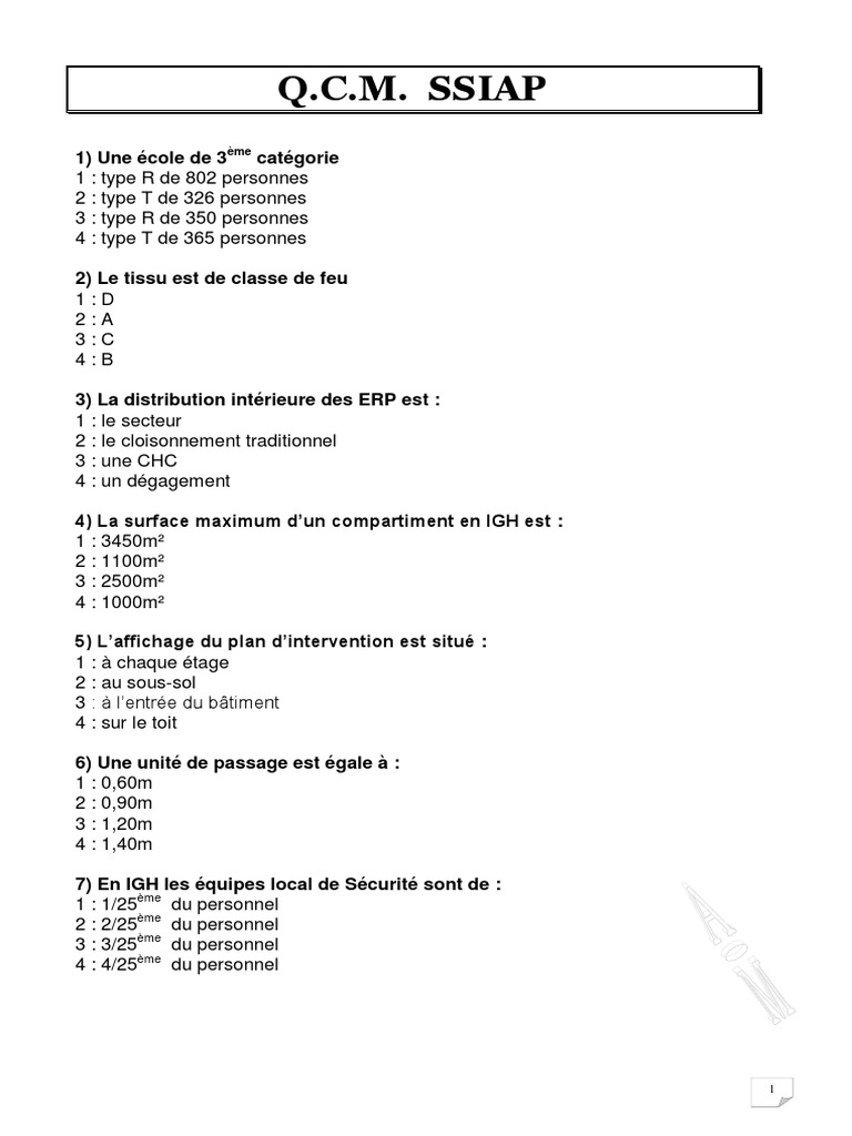 123 Qcm Ssiap Feu Lutte Contre L Incendie