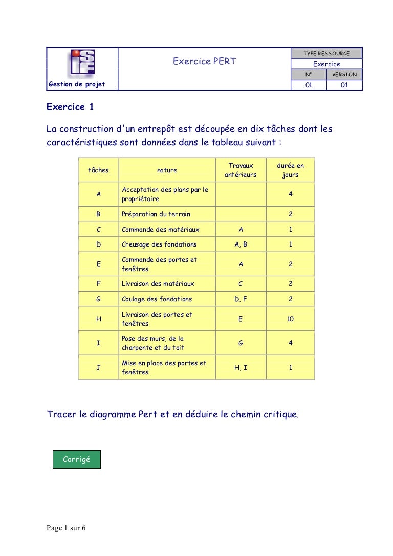 Exercice Diagramme De Pert Gestion De Projet Informatique Exercice Informatique Poo Informatique Exercice Poo