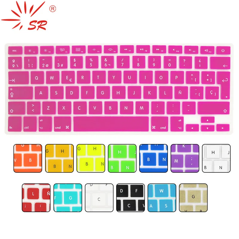Autocollant De Couverture De Clavier En Silicone Lettres Ue Langue Espagnole 14 Couleurs Pour Macbook Air 13 Pro 13 15 17 Retina Aliexpress