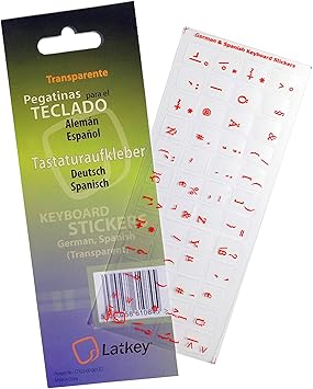 Clavier Espagnol Allemand Autocollants Pour Mac Pc Ordinateur Portable Macbook Les Autocollants De Clavier Avec Des Lettres Rouges Sur Fond Clair Transparent Amazon Fr High Tech