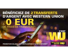 Western union Le premier envoi est gratuit, et tous les 5ème Citation alloallo a écrit La plateforme est suspendu, mais je ne connaissais pas du tout Merci pour l'info Répondre Citer alloallo 12 octobre 19 27 Non je n'ai pas d'agence dans ma ville, je suis allé sur leur site et le montant mensuel limité est petit. Apply the Western Union Promo Code at check out to get the discount immediately Don't forget to try all the Western Union Promo Codes to get the biggest discount To give the most uptodate Western Union Promo Codes, our dedicated editors put great effort to update the discount codes and deals every day through different channels. Western Union promo codes work in much the same way and, like the coupons, work on westernunioncom as well as in the in store locations This makes it an ideal service for those that do not wish to send money, which may get lost, through the mail for birthdays, weddings, and other seasons of giving.