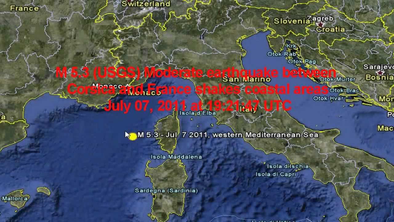 Tremblement De Terre Modere Entre La Corse Et La France Mer Mediterranee Juillet 7 11 Youtube