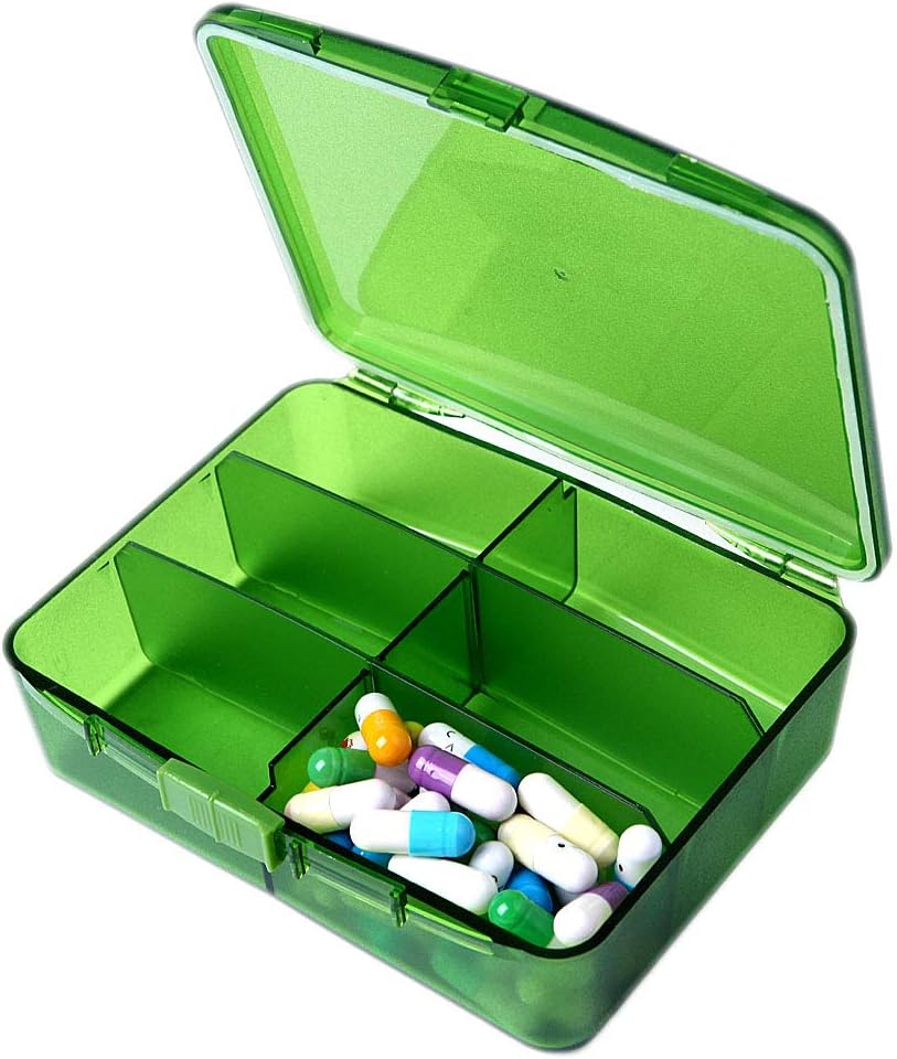 Amazon Com Xinhome 6 Compartment Pill Box Holds Up To 0 Tablets Gasketed Waterproof Green Health Personal Care