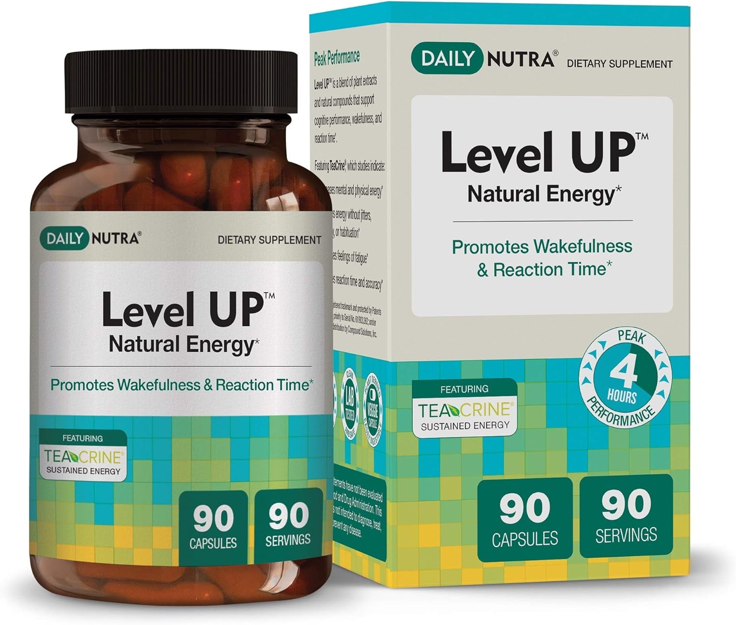 Amazon Com Level Up Natural Energy By Dailynutra Focus Supplement Promotes Cognitive Performance Reaction Time Energy Pill With Green Tea Extract Teacrine And Ksm 66 Ashwagandha 90 Capsules Health Personal Care