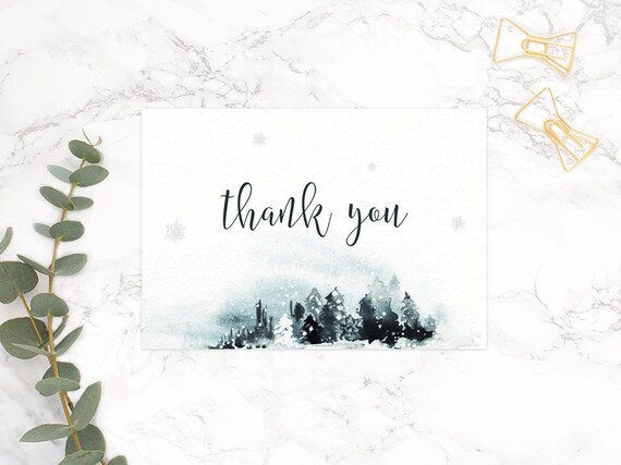 Winter Wedding Thank You Card Printable Winter Wonderland Etsy