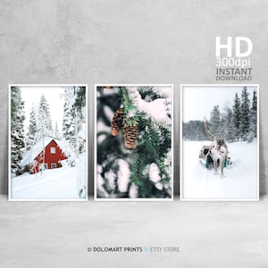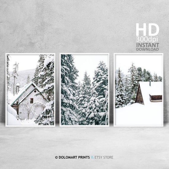 Winter Wonderland Decor Set Of 3 Prints Snow Forest Print Etsy