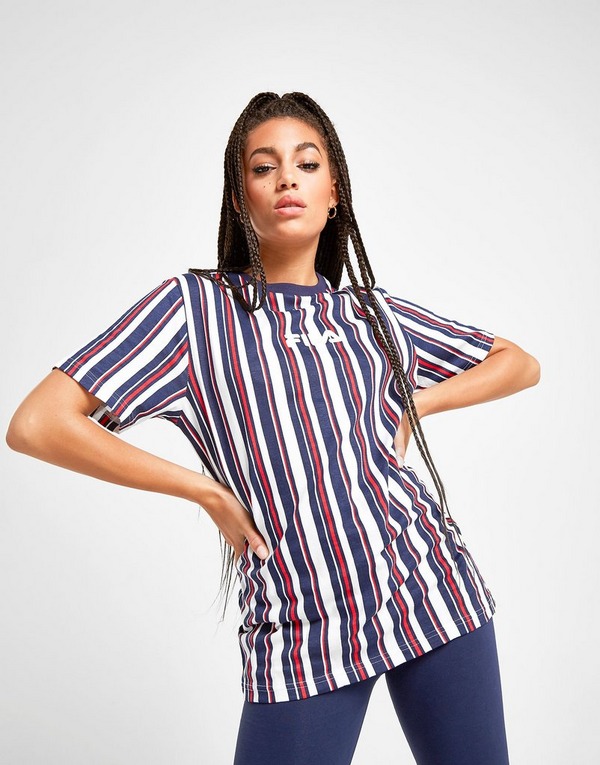 Buy White Fila Logo Striped Boyfriend T Shirt Jd Sports