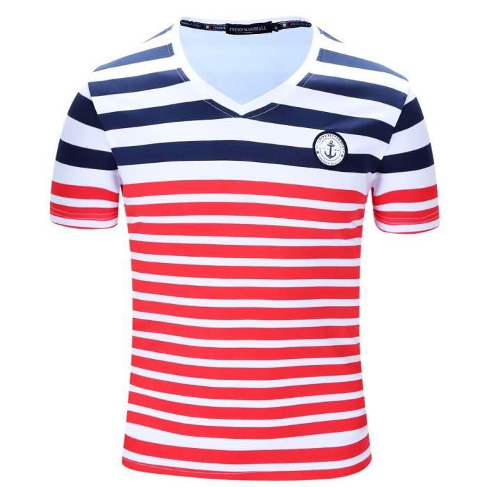 T Shirt Rayures Homme T Shirt Raye Col V Coton Casual Ete Manche Courtetee Shirt Masuline S1967 Rouge Achat Vente T Shirt Soldes Sur Cdiscount Des Le Janvier Cdiscount