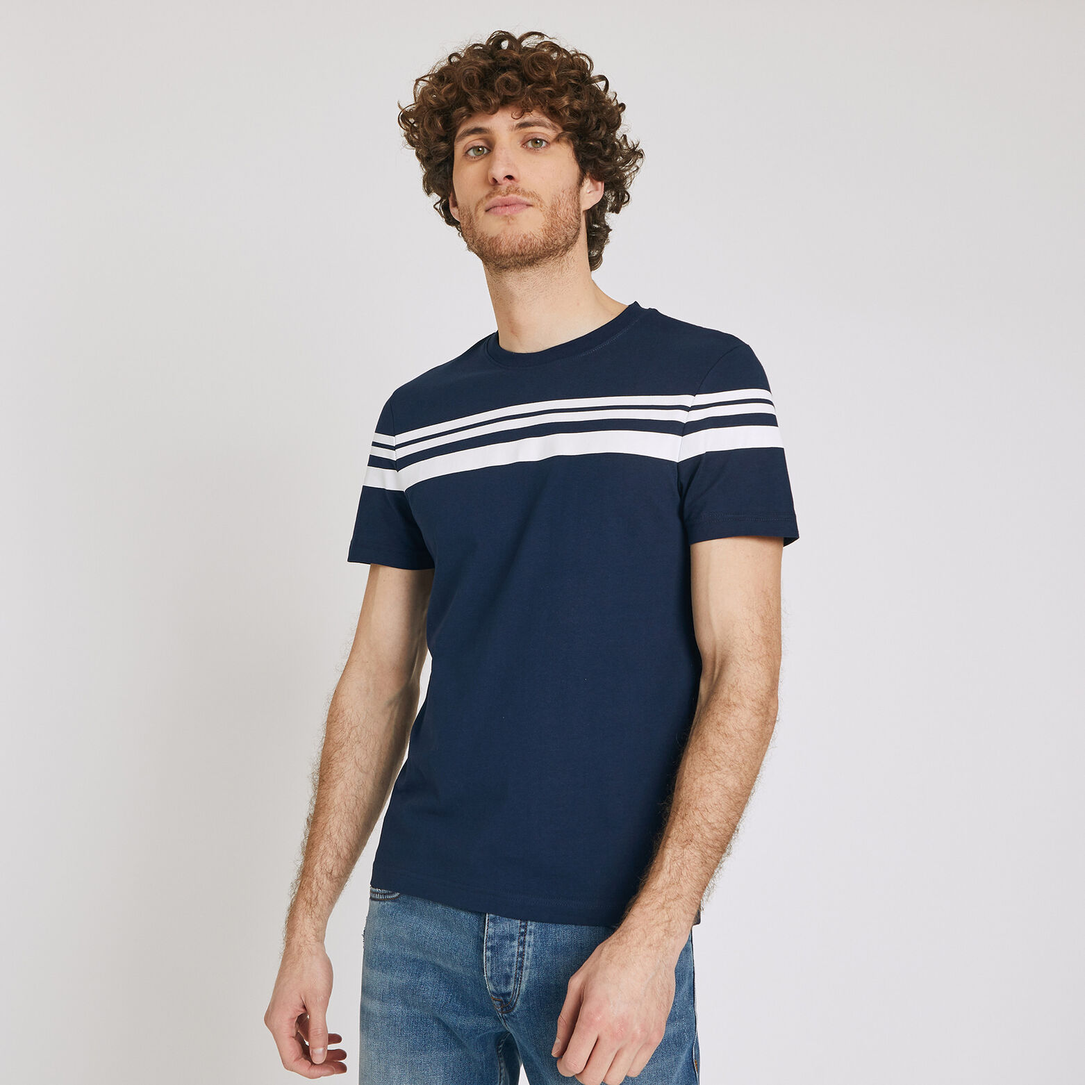 Gemo Vetements Tee Shirt Homme A Rayures Verticales Tricolores Imprime Tee Shirts Homme Gemo