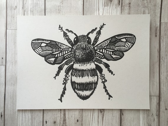 Honey Bee Honey Bee Print Bee Art Bee Linoprint Gift Etsy