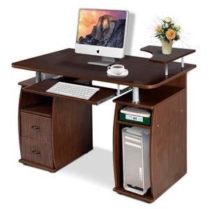 Costway Bureau Informatique Table De Bureau En Mdf Pour Ordinateur Multi Rangements Avec Tablette Imprimante Tablette A Clavier Coulissante 2 Tiroirs 1x55x85cm Noyer Amazon Fr Cuisine Maison
