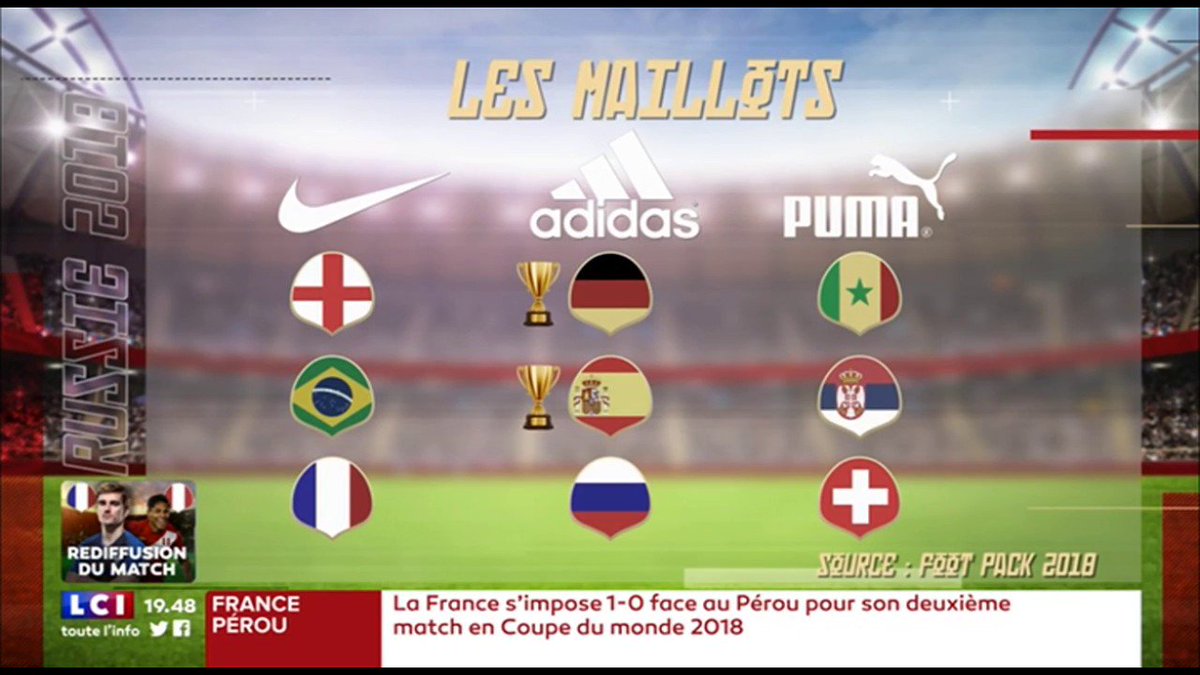 Le 18h h Lci Adidas Est L Equipe Qui Sponsorise Le Plus D Equipes Pour Cette Coupe Du Monde Vous Etes Plutot Adidas Nike Ou Puma Cm18 T Co 7ke3k7zg67