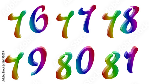 Seventy Six Seventy Seven Seventy Eight Seventy Nine Eighty Eighty One 76 77 78 79 80 81 Calligraphic 3d Rendered Digits Numbers Colored With Rgb Rainbow Gradient Isolated On White Buy