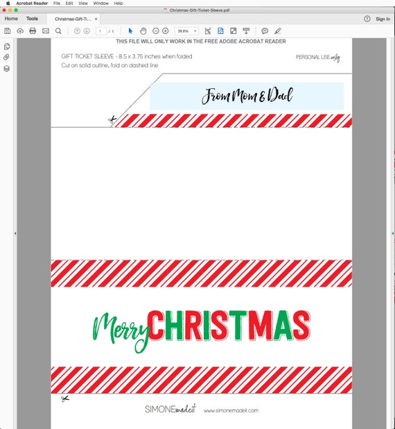 Printable Sleeve Envelope For Christmas Gift Tickets Etsy
