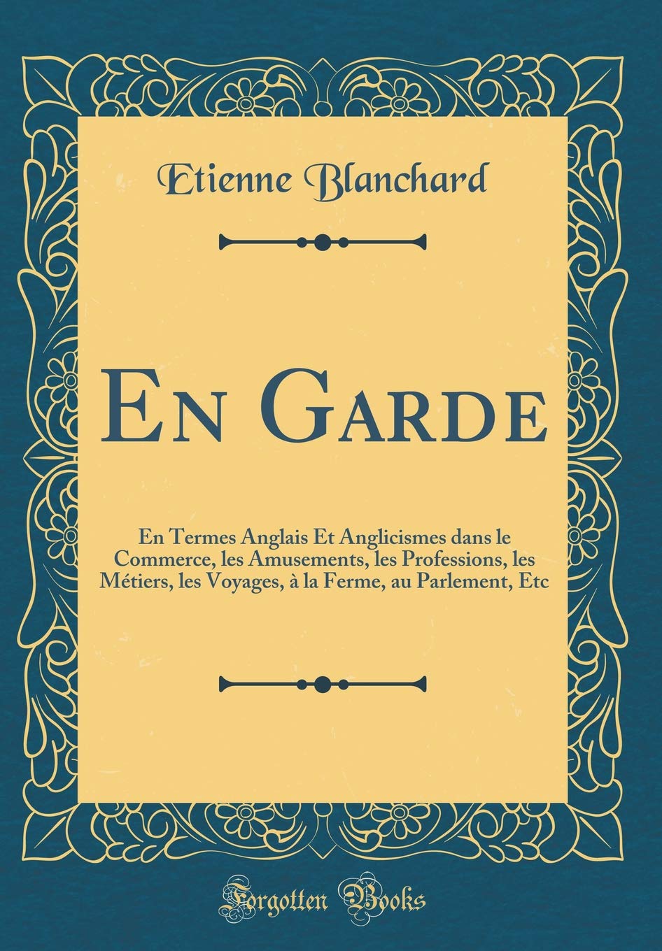 En Garde En Termes Anglais Et Anglicismes Dans Le Commerce Les Amusements Les Professions Les Metiers Les Voyages A La Ferme Au Parlement Etc Classic Reprint French Edition Blanchard Etienne Amazon Com