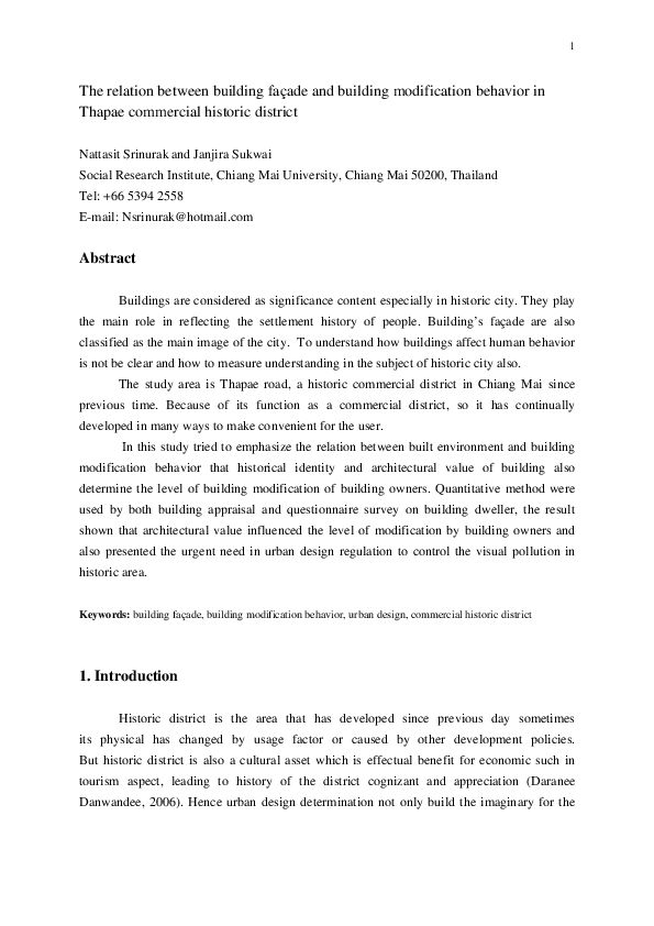 Pdf The Relation Between Building Facade And Building Modification Behavior In Thapae Commercial Historic District Janjira Sukwai And Nattasit Srinurak Academia Edu