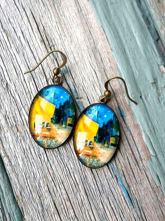 Van Gogh Earrings Cafe Terrace At Night Terrasse De Cafe Le Etsy