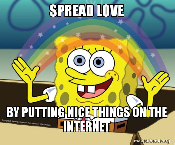 SUB TO BE A LEGEND http//googl/HXwElgFOLLOW ME!• Twitter https//googl/Amqx54• Discord http//discordgg/LazarBeam• Instagram https//googl/gG. Here are 55 funny coronavirus memes that will make you LOL We found the best coronavirus memes about social distancing, toilet paper, homeschooling, as well as ways to spread a little more kindness. "spread love" Memes & GIFs Make a meme Make a gif Make a chart Spread Love by DanielBoyce 757 views, 3 upvotes share Spread Love Spread Love SPREAD LOVE, NOT HATE image tagged in gifs,spread love,pikachu made w/ Imgflip videotogif maker by DylanWomack 2,101 views, 15 upvotes, 18 comments.