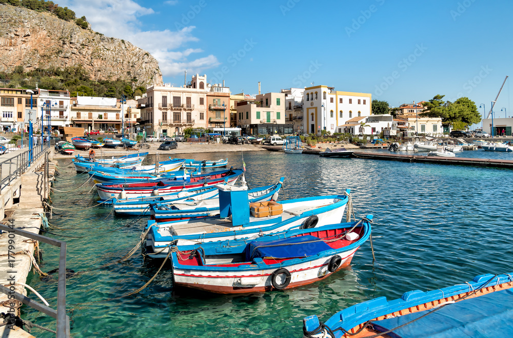Fotobehang Small Port With Fishing Boats In The Center Of Mondello Palermo Sicily Foto4art