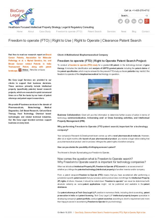Freedom To Operate Search Freedom To Operate Study For India