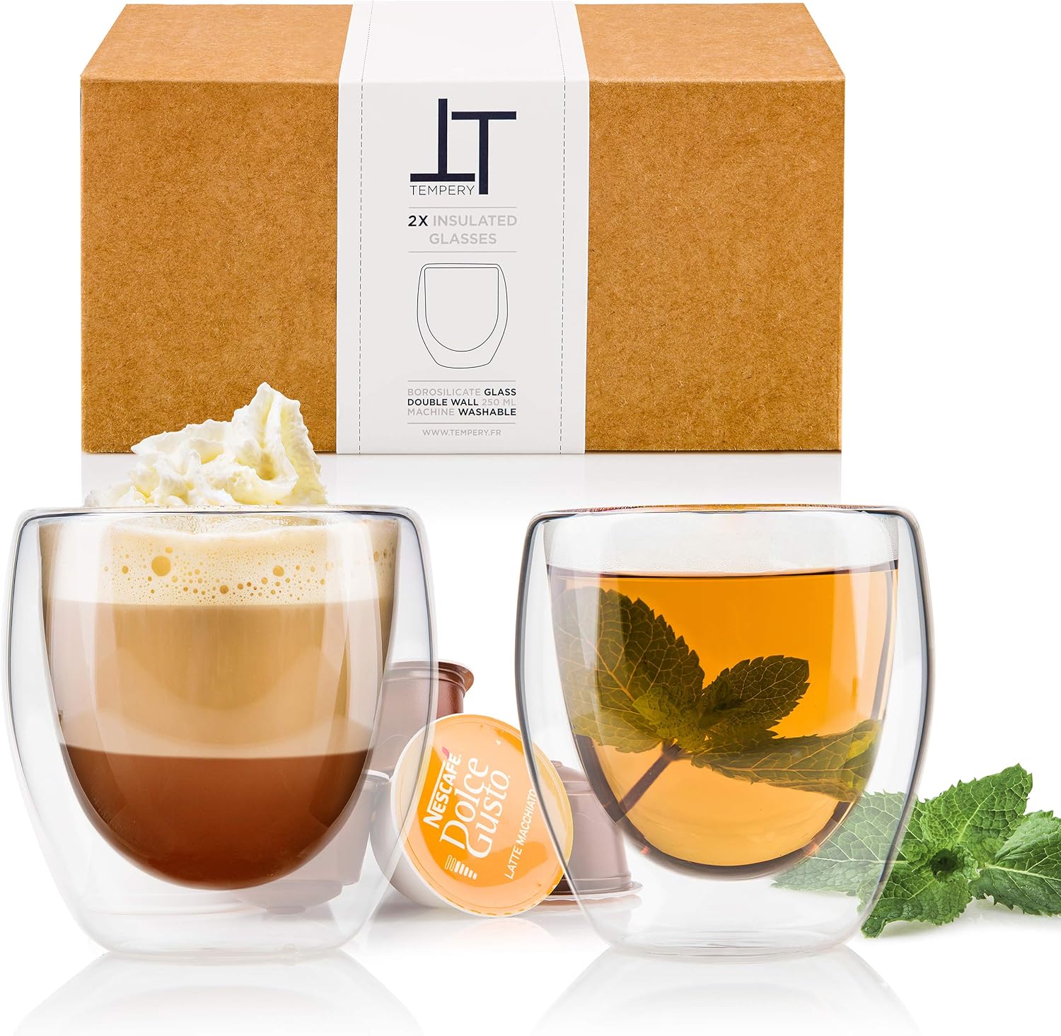 Tempery Tasse A Cappuccino Latte Cafe The En Verre 250ml Set Coffret De 2 Mug Double Paroi Tasse The Originale Cadeau Parfait Pour Toute Occasion Amazon Fr Cuisine Maison