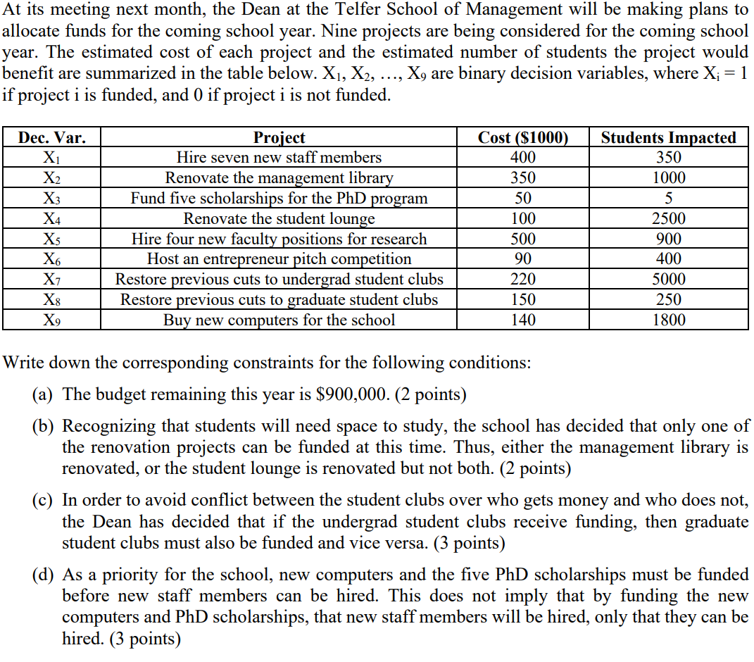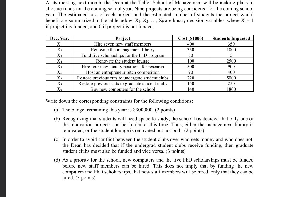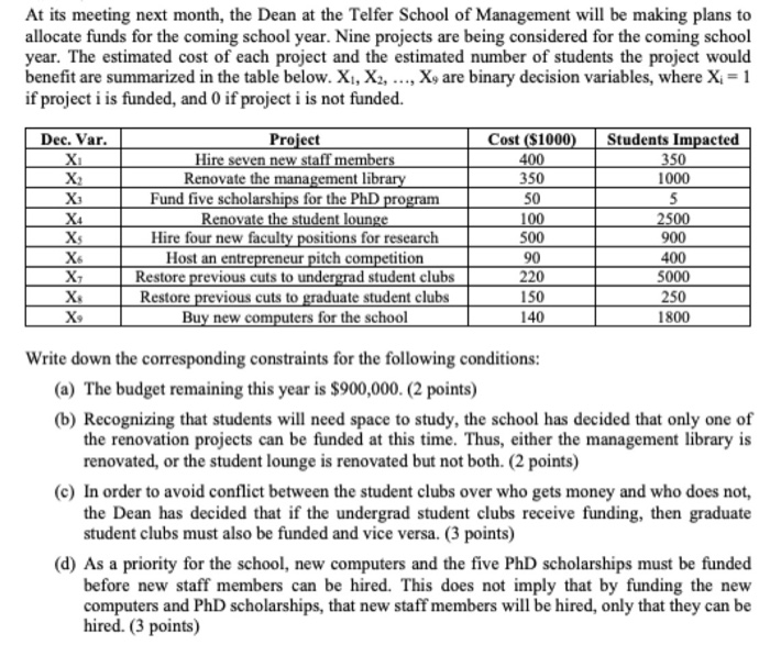 Solved At Its Meeting Next Month The Dean At The Telfer Chegg Com