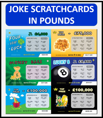 100 Blague Farce Loterie Gratter Faux 6 Designs Ideal Pour Noel Anniversaires Ebay